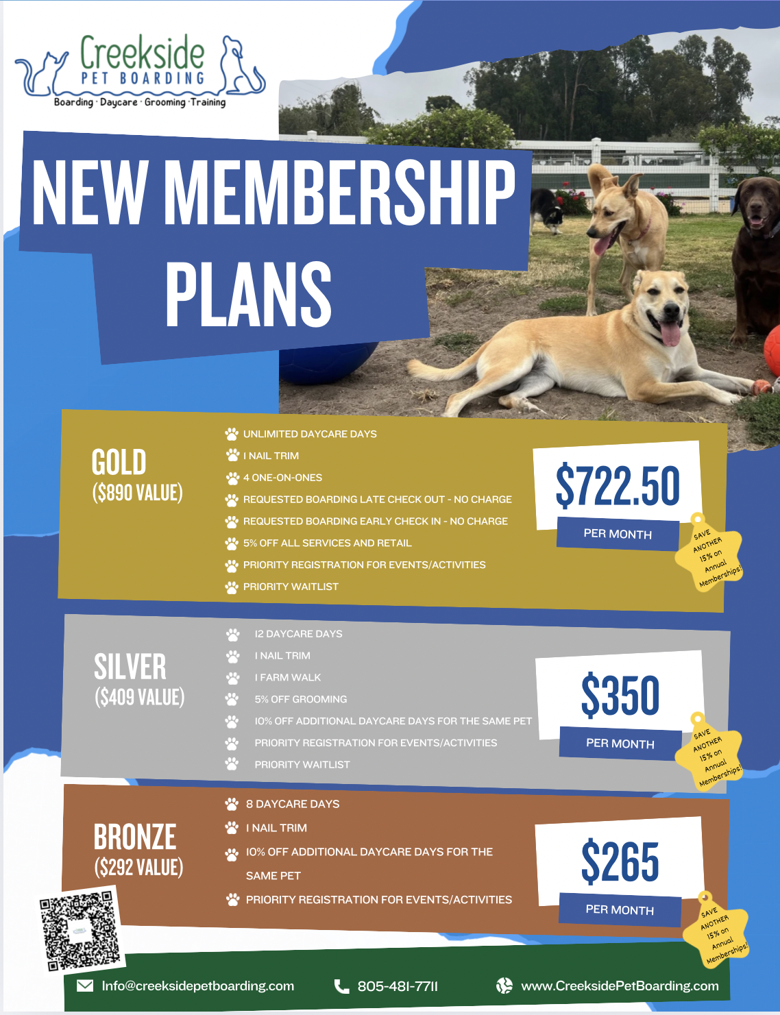 Please bring proof of current vaccinations or have your vet email it to us at: info@creeksidepetboarding.com.